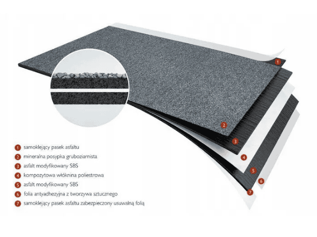 Papa charakteryzuje się wysoką odpornością na spływanie w temperaturze do 105°C, co zapewnia stabilność nawet podczas intensywnego nasłonecznienia. Grubość 2,8 mm umożliwia łatwe układanie i dopasowanie do połaci dachowej, a standardowy format rolki 7,5 × 1 m usprawnia logistykę oraz tempo prac dekarskich. Produkt pakowany jest ekonomicznie na paletach, co ułatwia realizację większych inwestycji.
