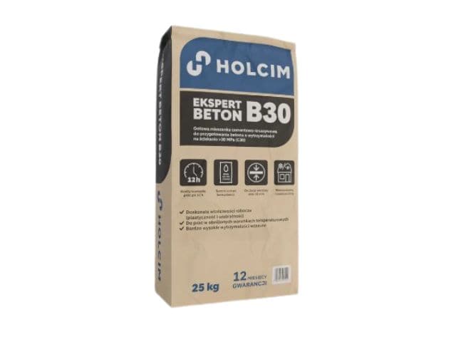 Holcim Ekspert Beton B30 - to profesjonalna sucha mieszanka przeznaczona do wykonywania betonu o podwyższonej klasie wytrzymałości.