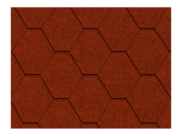 Charakterystyczny sześciokątny kształt nadaje dachowi rytmiczny, estetyczny wygląd, dobrze wpisujący się w różne style architektoniczne. Rdzeń z włókna szklanego oraz warstwa bazaltowej posypki zapewniają wysoką odporność na czynniki atmosferyczne. Produkt sprawdzi się zarówno w nowych realizacjach, jak i przy renowacjach dachów o różnych kątach nachylenia.
