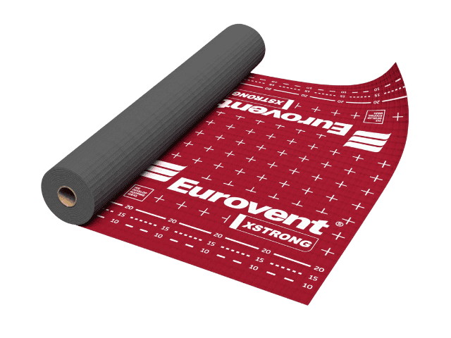 Eurovent XSTRONG 250g to wysokoparoprzepuszczalna membrana dachowa zaprojektowana do krycia dachów skośnych, ocieplonych i wentylowanych, w tym z pełnym deskowaniem. Produkt wyróżnia się ekstremalną odpornością na rozrywanie dzięki czterowarstwowej budowie oraz zbrojeniu siatką PE, co przekłada się na wyjątkowy komfort prac dekarskich. Membrana jest wodoodporna, utrzymuje stabilność parametrów przy niskich nachyleniach połaci i może być stosowana pod najpopularniejsze pokrycia dachowe.