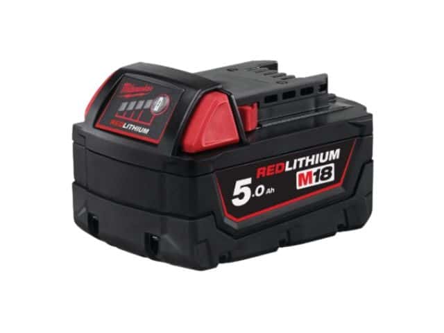 MILWAUKEE M18B5 akumulator 5,0Ah to wydajne i niezawodne źródło zasilania dla profesjonalnych elektronarzędzi pracujących w systemie M18™.