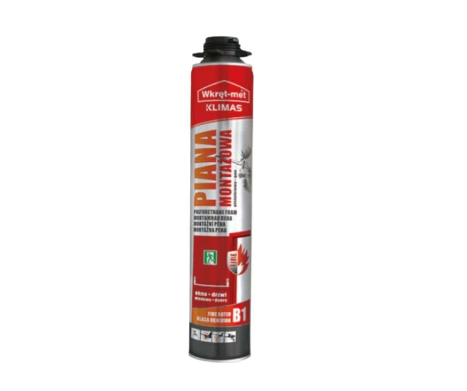 Piana pistoletowa ognioodporna Klimas FIRE-FOAM - zaprojektowana do zastosowań wymagających podwyższonej odporności ogniowej oraz trwałego uszczelnienia przegród budowlanych.