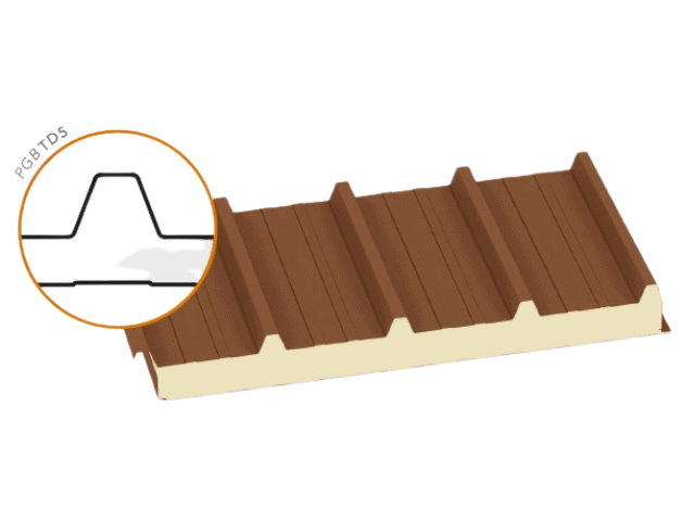 Płyty warstwowe dachowe Marcegaglia TD3 oraz TD5 z rdzeniem poliuretanowym zostały zaprojektowane do wykonywania dachów o minimalnym spadku powyżej 7%. Dzięki głębokiemu profilowaniu zewnętrznej okładziny zapewniają wysoką sztywność oraz zdolność przenoszenia obciążeń użytkowych i śniegowych. System gwarantuje szybki montaż, szczelność połączeń i bardzo dobre parametry termoizolacyjne, co czyni go optymalnym wyborem dla nowoczesnego budownictwa przemysłowego i komercyjnego.