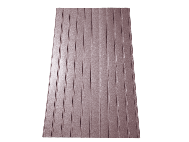 Profil T-7 dzięki subtelnemu przetłoczeniu sprawdza się zarówno jako elewacja, podsufitka, jak i okładzina garaży czy wiat. Matowe wykończenie PM redukuje refleksy światła, tworząc elegancką, głęboką barwę - bardziej naturalną niż połysk. To popularny wybór w nowoczesnych realizacjach oraz przy zabudowach w stylu klasycznym.